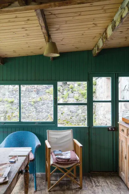 This dark grey green is named after the study-like rooms much favoured in the Victorian period and is unapologetic in its strength. It really comes alive when contrasted with a warm neutral like Off-White or set against the darker Studio Green, but feels more contemporary when used with no contrasts at all.