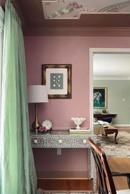 Cinder Rose has barely any of the yellow pigment found in most pinks, making it feel bluer and more romantic. Taking its name from the prettiest of traditional roses, it is the perfect colour for creating a dusky feel in a bedroom, but is also much favoured in garden rooms when paired with complementary Skimming Stone. To enhance its softness, try using Great White on your woodwork.