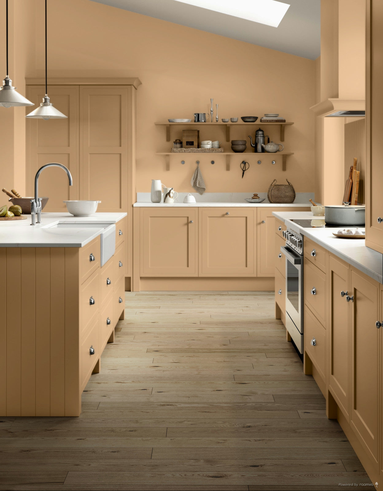 Rather than the blushing shades we now collectively call pink, this peachy colour takes its name from the original ‘Dutch pink’, an artist’s yellow pigment made from bark or berries. Like all our colours, it’s extraordinarily responsive, appearing more orange, yellow, or pink depending on the light.