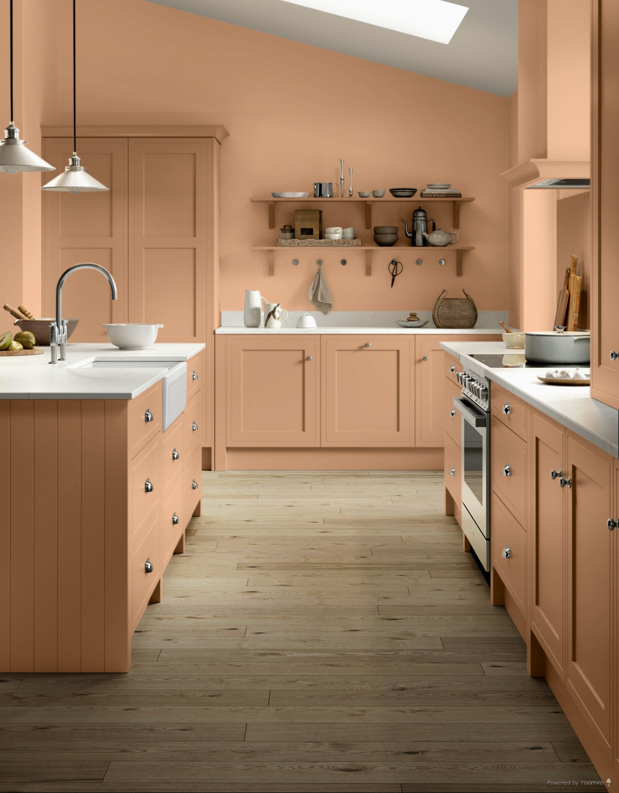 This shade of pink was one particularly favoured by decorator and colourist John Fowler, who used it often in paints and wallpapers. With a tone that verges on orange, it’s a brighter, more saturated alternative to our more complex pinks, such as Setting Plaster or Dead Salmon.