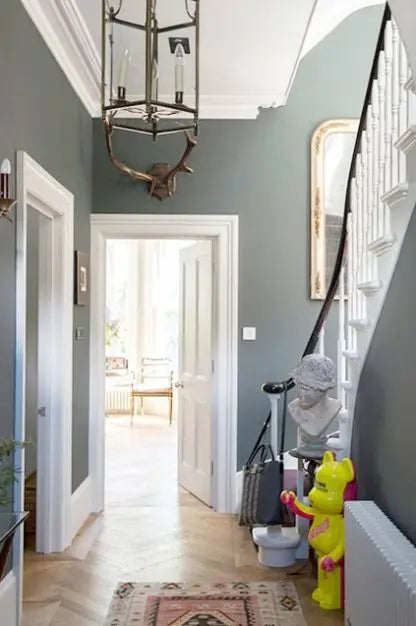 Our most traditional blue grey was originally created when a white room had been stained by the trimming of lamp wicks. Lamp Room Gray creates a softer more lived in finish than Pavilion Gray, while retaining a sense of timelessness. It is surprisingly strong when used in smaller rooms but softens in larger, well lit spaces.