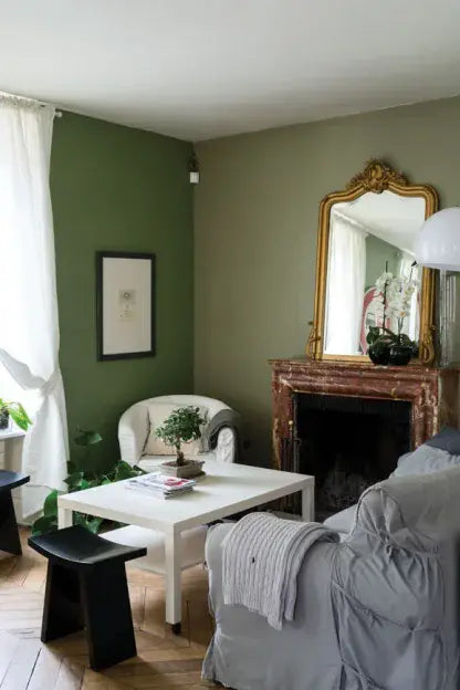 This calm and muted green is named after the ever changing, subtle colour of creeping algae which ages stone so beautifully. It has a quiet and subtle feel to it, due to its underlying blue tone, and is perfect for use in the garden where it feels totally at one with nature. It works wonderfully as a darker accent to Vert de Terre too.