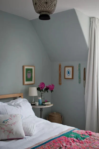 This silvery blue was so named because it was the lightest blue Farrow & Ball made in its first collection of colours. Light Blue becomes a little more silver in tone when used in shaded areas so is very popular for use on the walls of internal halls, especially when the remainder of the house is painted in cooler, more neutral greys. When used in well lit areas it feels both peaceful and calming, especially when paired with a cool white like Blackened.