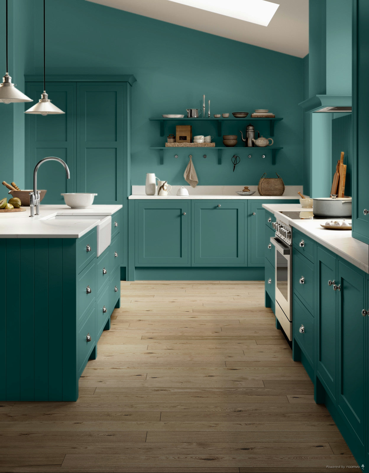 Mere Green is a luxurious teal shade, a little more intense in colour than Vardo. Despite its more traditional feel, it still bursts with energy, making it ideal for the contemporary home.