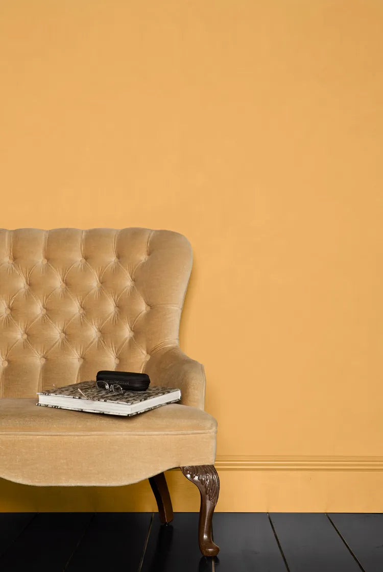 Appearing more orange or more yellow depending on the light, this beautifully singular shade is reminiscent of an 18th-century colour much used in orangeries. It brings an enveloping warmth to walls, especially in south facing rooms that are flooded with light throughout the day.