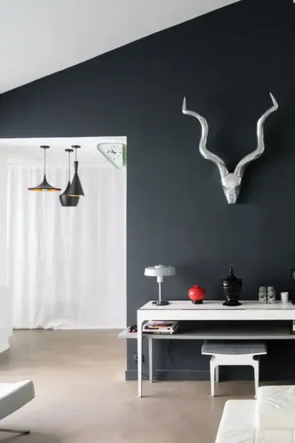 Pitch Black is as pure a black as you can get and is strong and uncomplicated in all lights. Named after the dark sticky residue of coal tar often used in roofing, this true black has an unsurpassable depth and almost velvet quality. As with All White at the other end of our colour palette, it is easy to understand and indispensable for ironwork, woodwork or even walls if you are feeling daring!