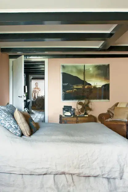 This dusty pink is named after the blushing walls we often admire in newly plastered houses. It is definitely a pink in historic terms, but has a certain softness to it due to the inclusion of yellow pigment. Our timeless Setting Plaster creates a wonderful backdrop to antique furniture, and also works incredibly well when paired with Mahogany in a more contemporary home.