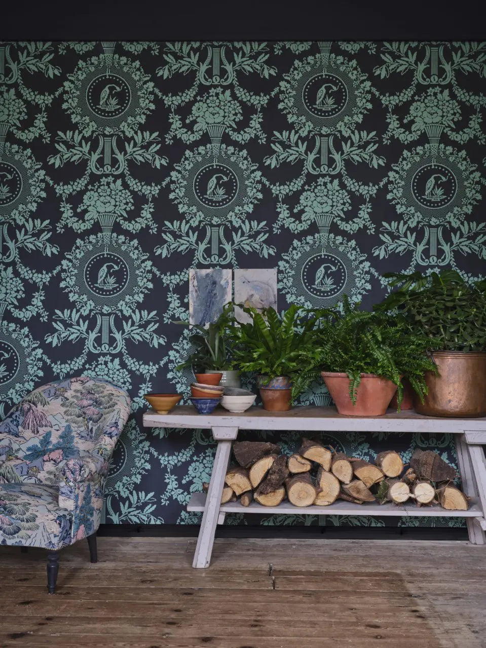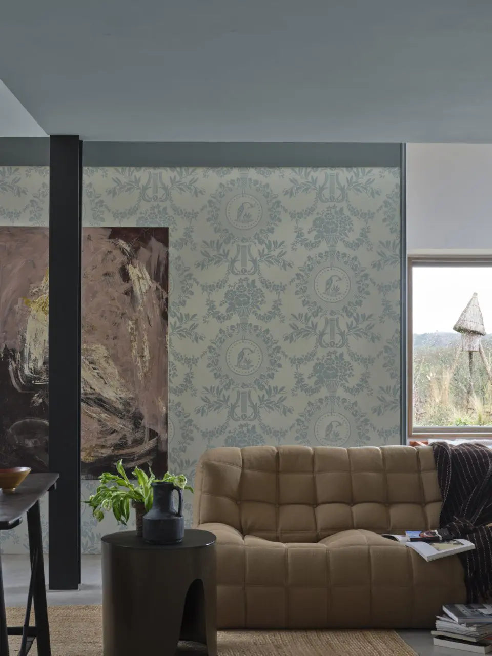 With a captivating heron motif, Purnon makes an elegant statement. This pattern was discovered on an 18th-century folding screen, where it would have been used as a room divider to create intimate spaces during grand banquets hosted at the château.