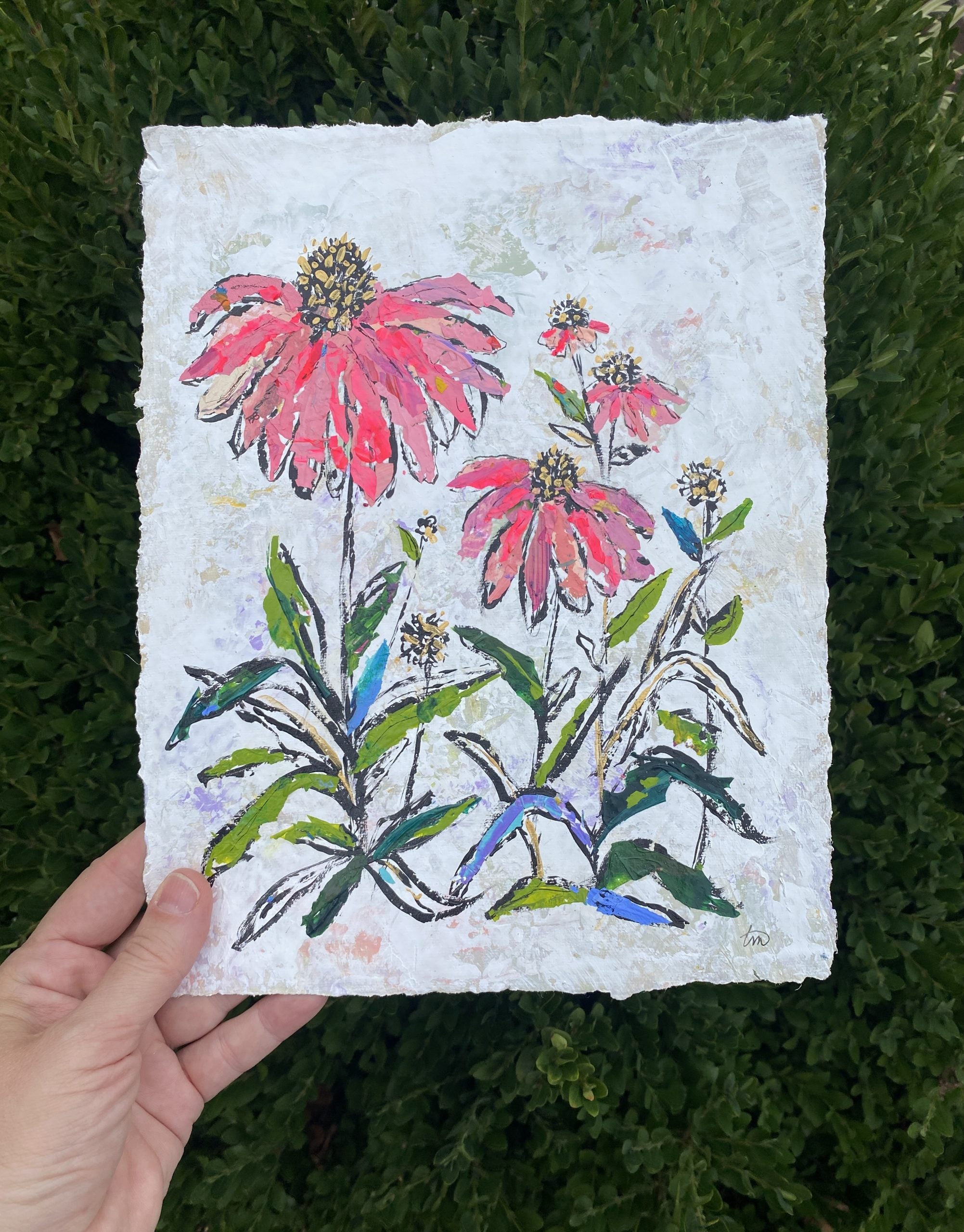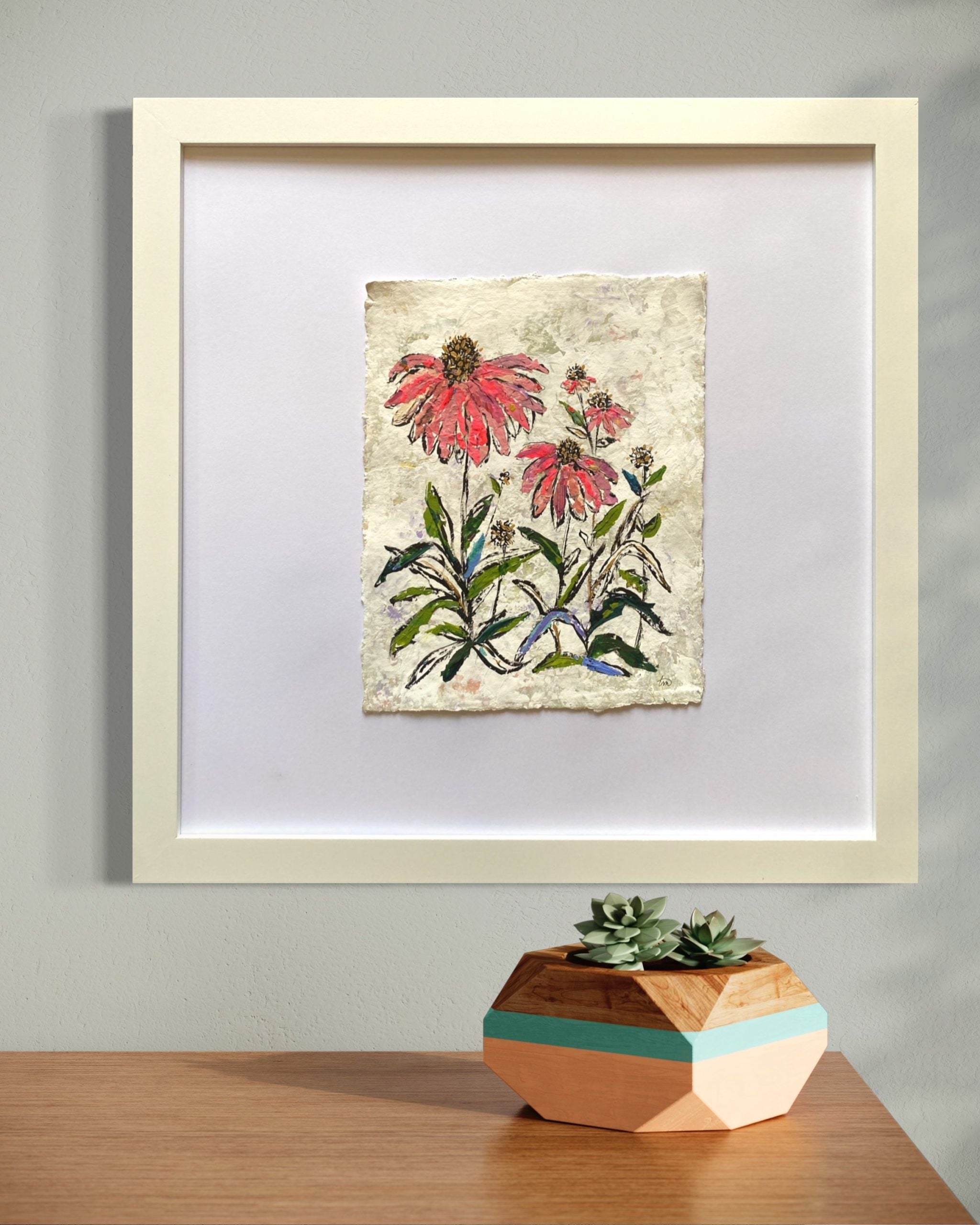 18″ x 18″, acrylic paint and paint skin collage on handmade cotton rag paper, framed