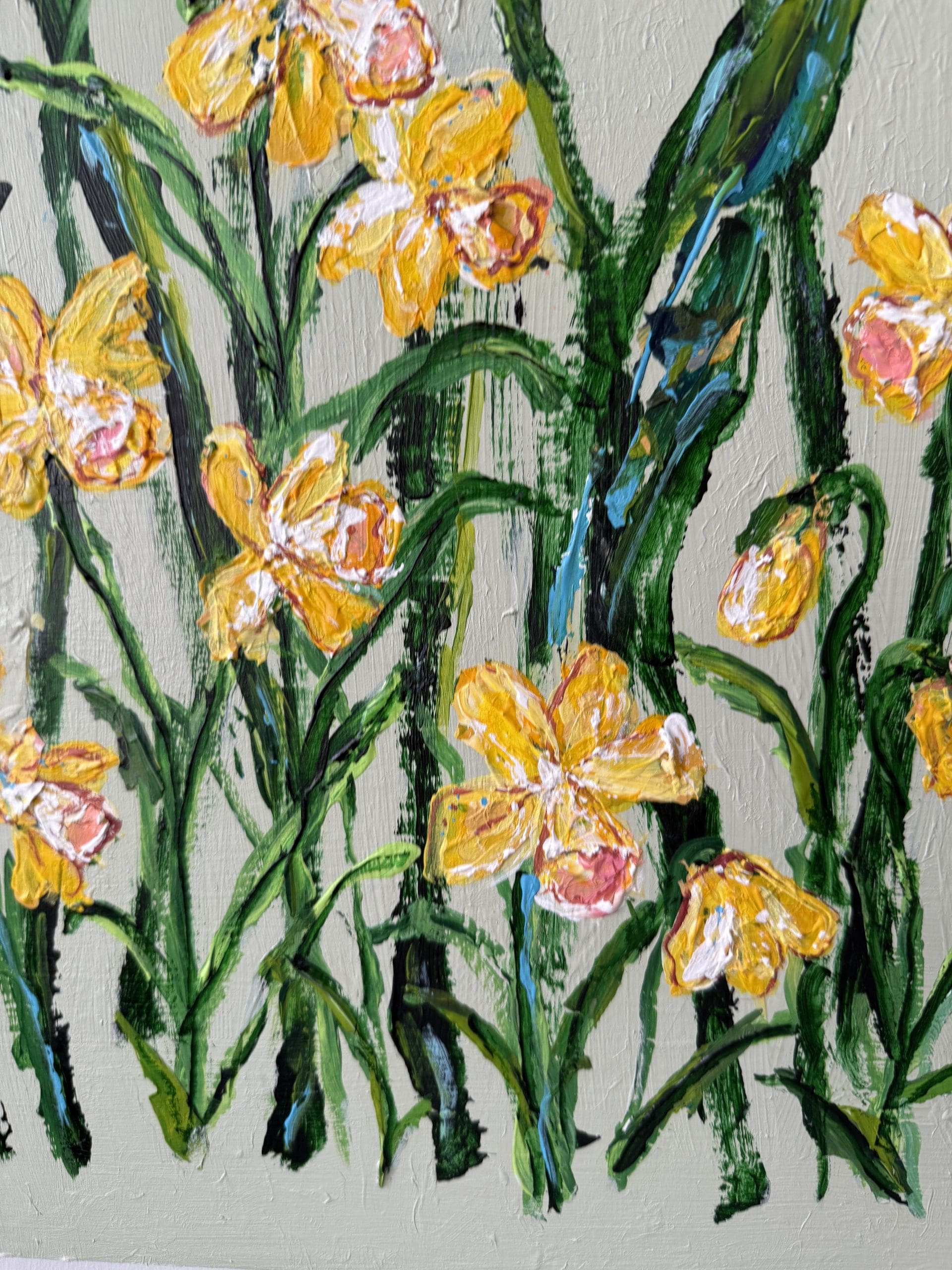 Theodora’s signature botanicals series fondly named “Blooming Girls” are created with luscious textural acrylic paint and paint chips from her recycled palette papers using a collage technique. This diptych (pair of paintings) makes an elegant statemen and serve as visual reminders to keep blooming in every season of life.
