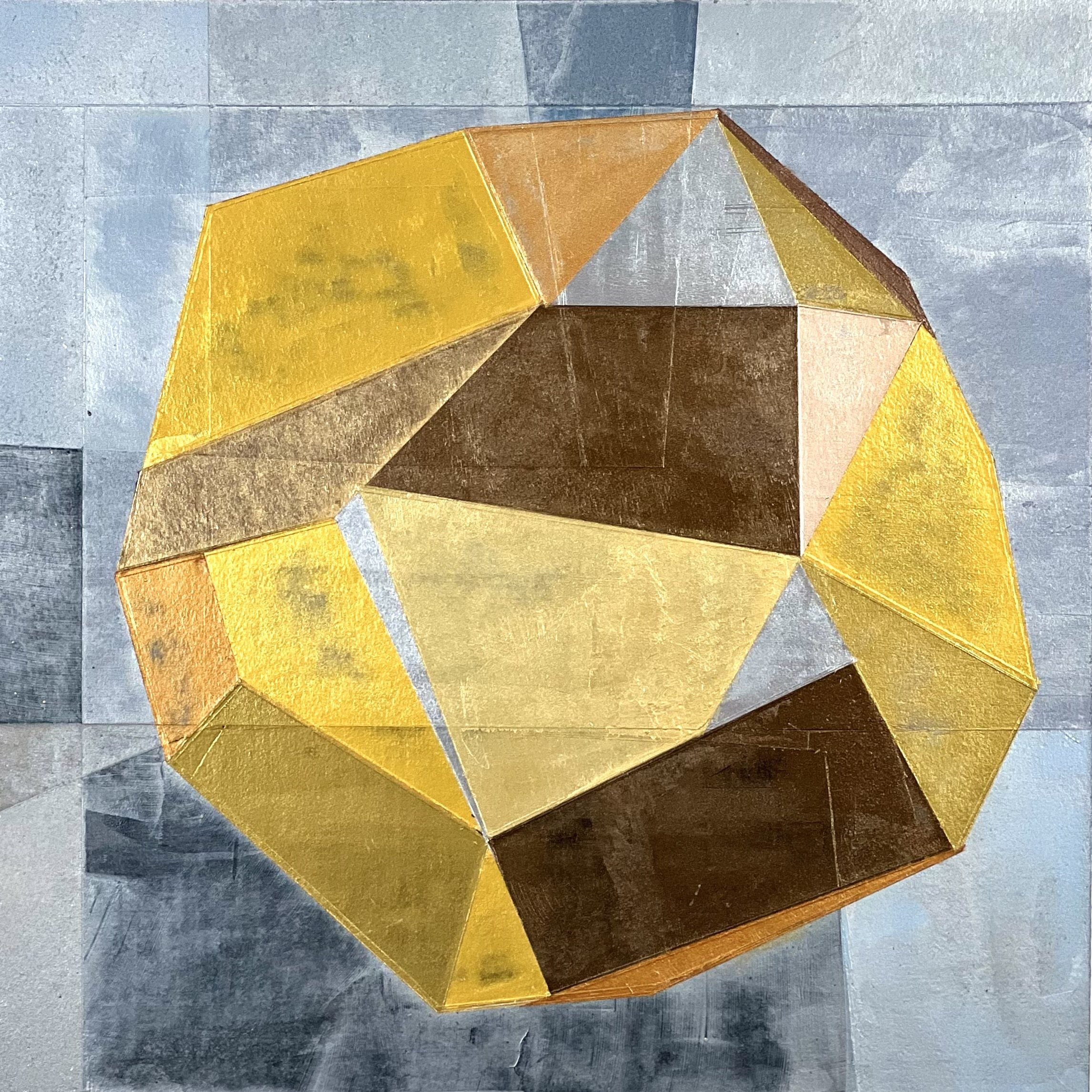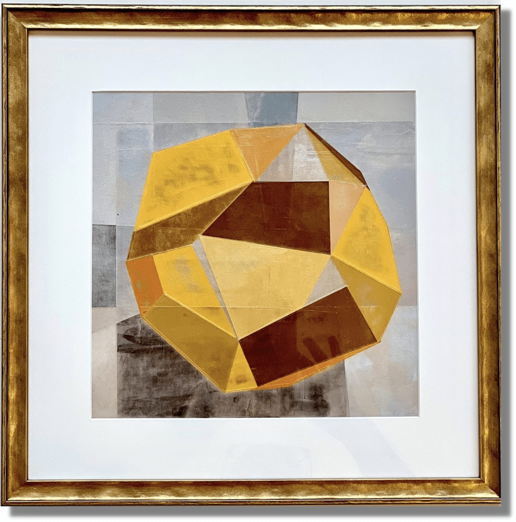 15″ x 15″ x 1″, matted and framed in gold under glass